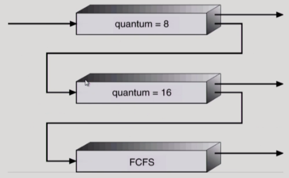 - 각 큐는 독립적인 스케줄링 알고리즘을 가짐