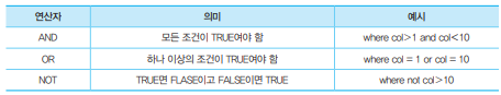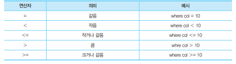 - WHERE절이 없으면 테이블의 전체 ROW가 조회된다.