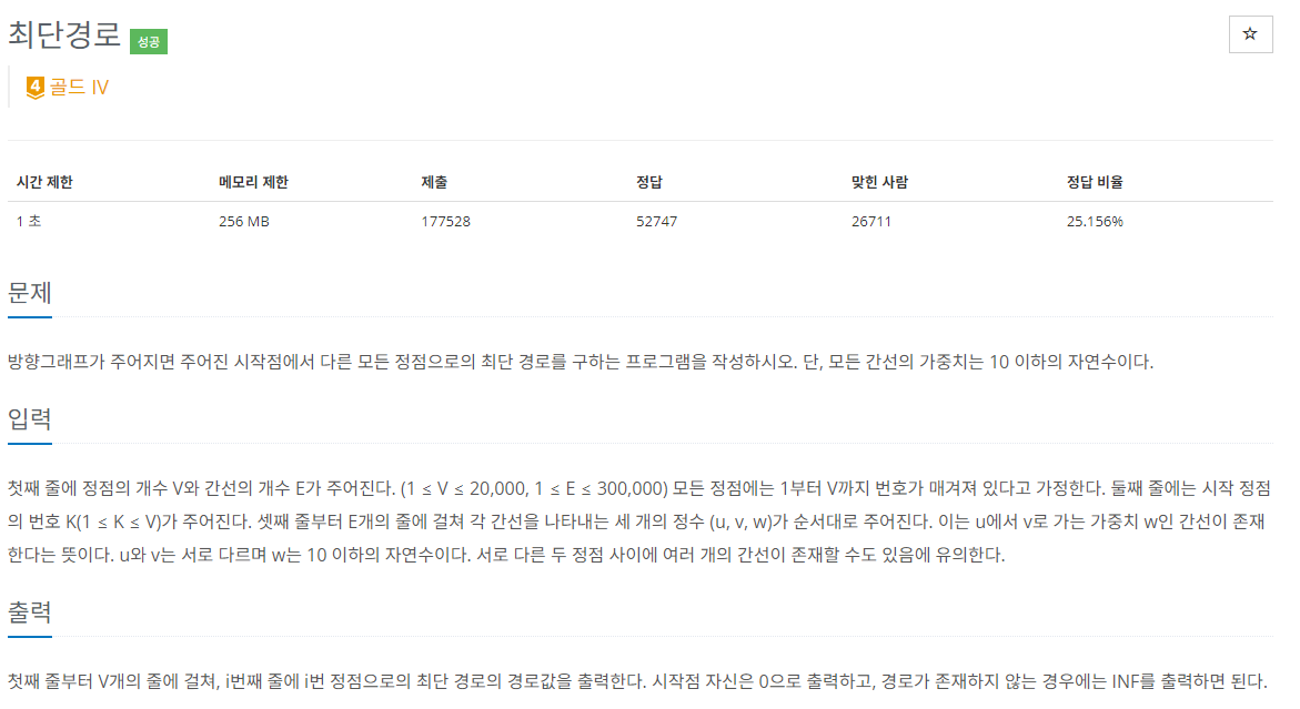 // 시작 노드에서부터 해당 노드까지의 최단 거리를 저장하는 배열