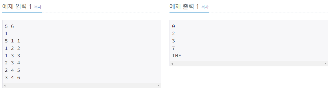 -> {0, INF, INF, INF, INF}; // 시작 지점을 0으로 지정